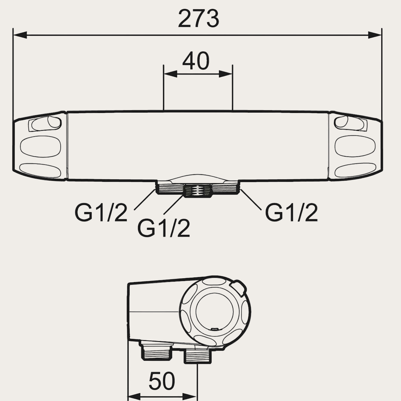 FMM 9000XE Termostat duschblandare Inlopp ned/utlopp ned 40 c/c Tryckbalanserad Dubbla backventiler Blyfri.