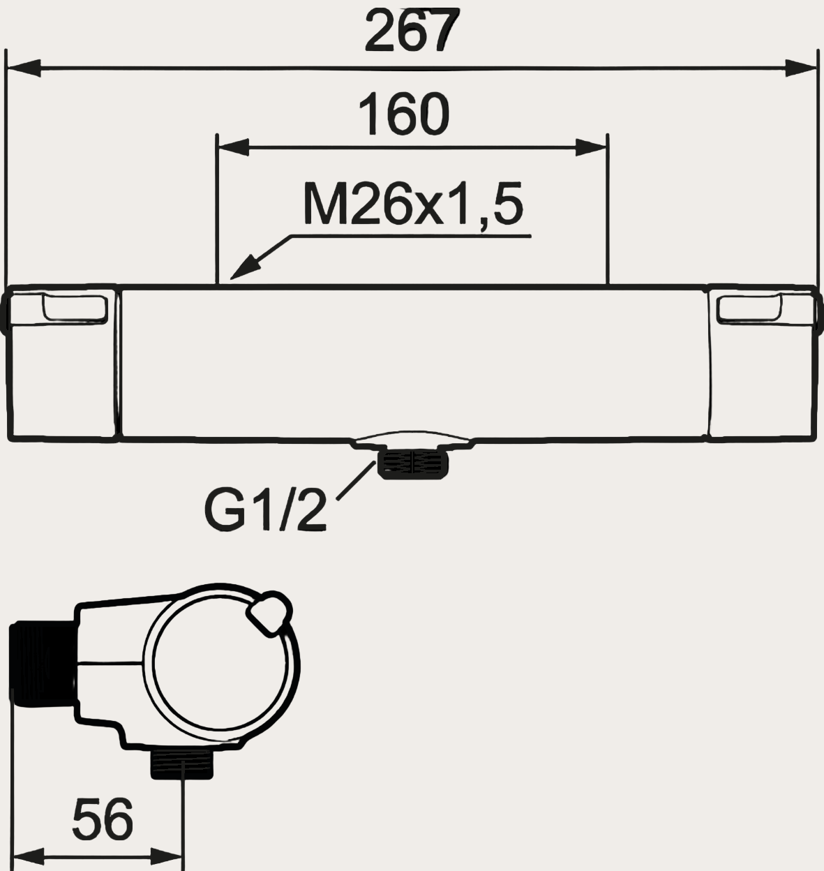MORA - MMIX II Termostat duschblandare Dubbla backventil utlopp ned 160 c/c