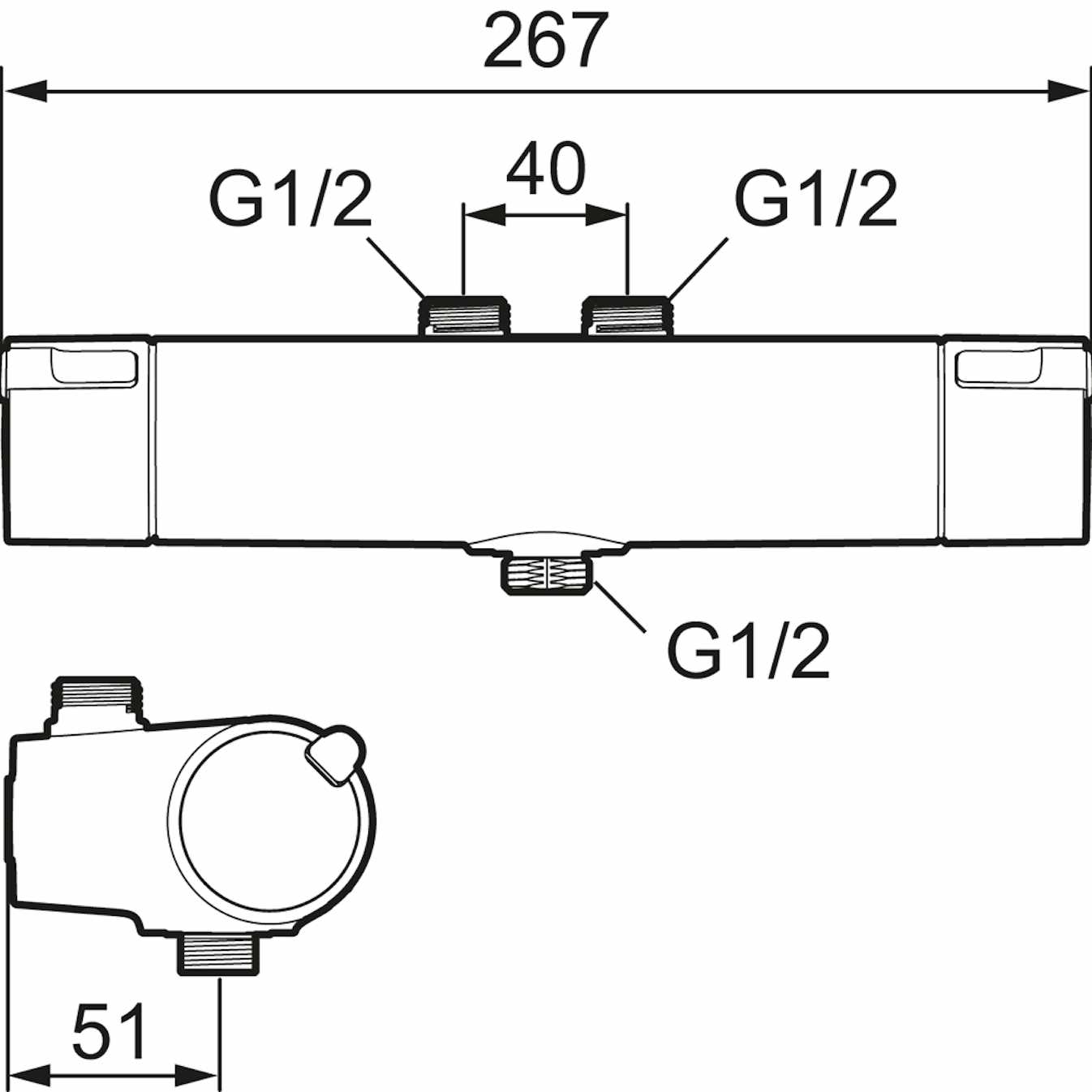 MORA - MMIX II Termostat duschblandare Dubbla backventilerinlopp upp/utlopp ned 40 c/c